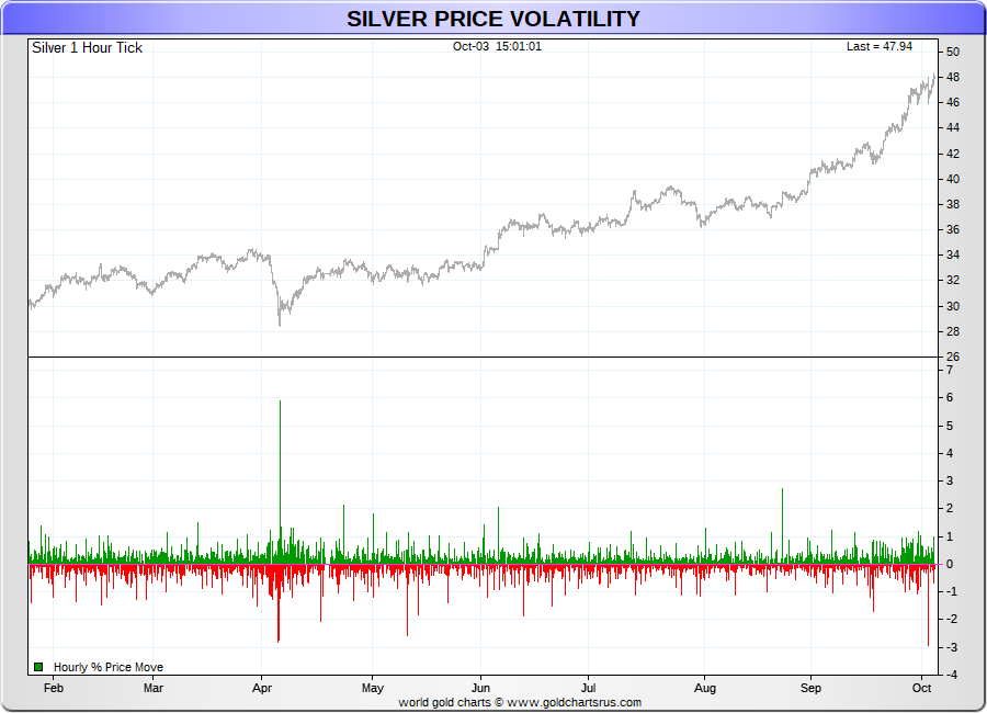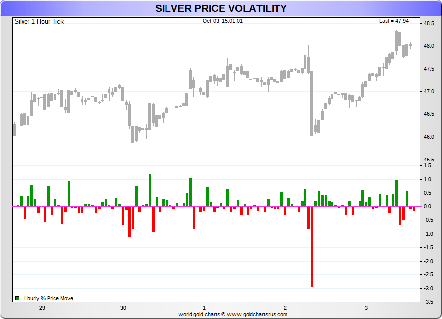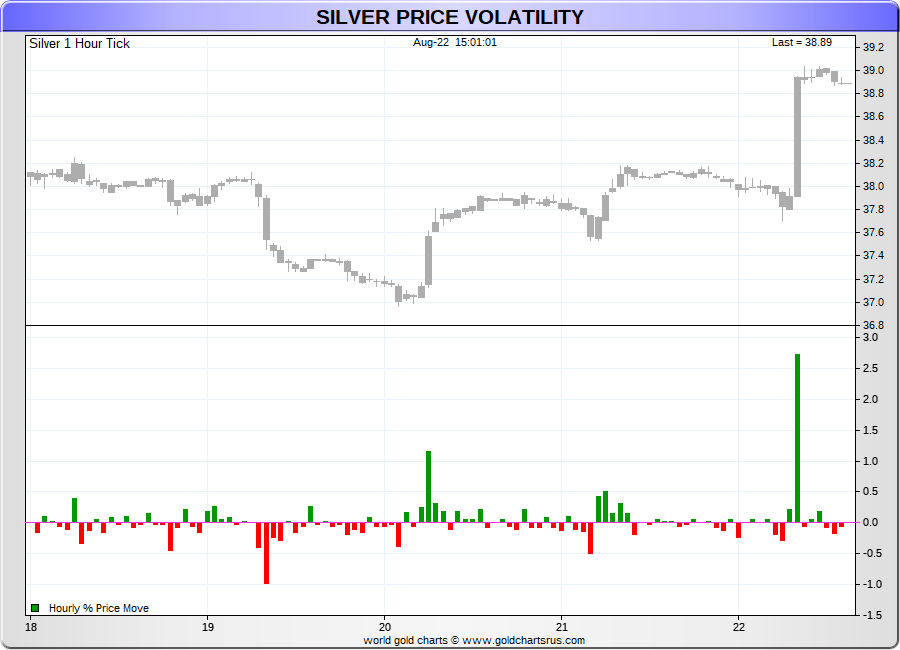 Spot Silver - 60 Minute Tick Charts - 24 hours / 5 1/2 days - GCRU Precious Metals Charts