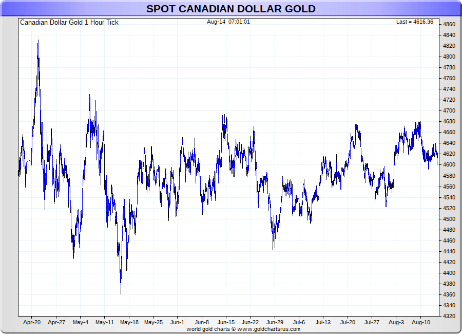 Spot Canadian Dollar Gold - 60 Minute Tick Charts - 24 hours / 5 1/2 days - GCRU Precious Metals Charts