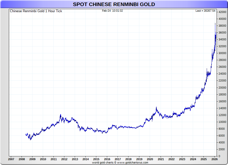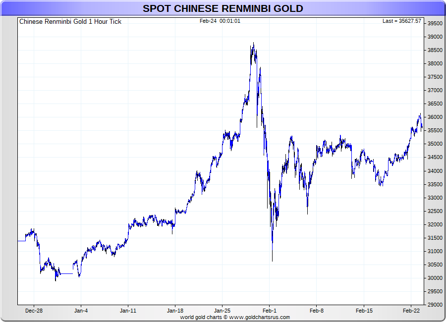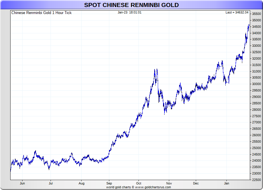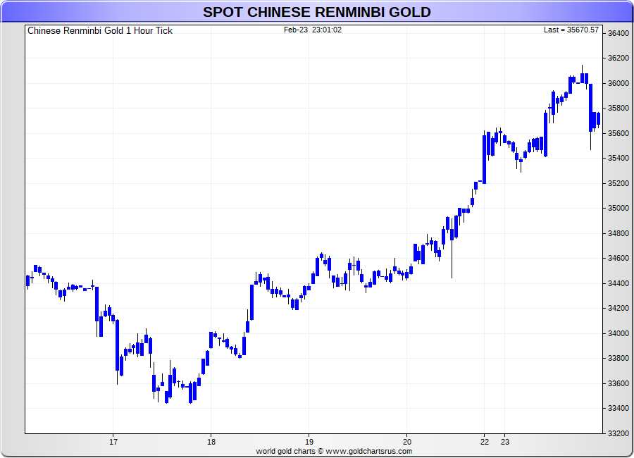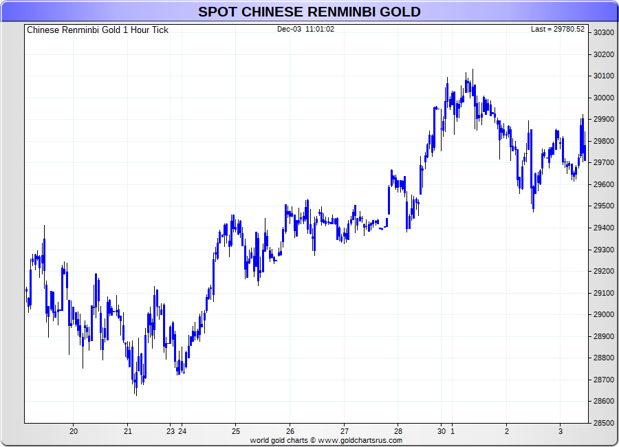 Spot Chinese Renminbi Gold - 60 Minute Tick Charts - 24 hours / 5 1/2 days - GCRU Precious Metals Charts