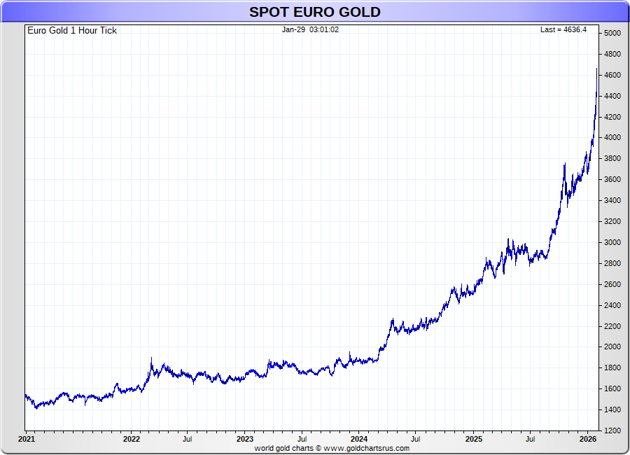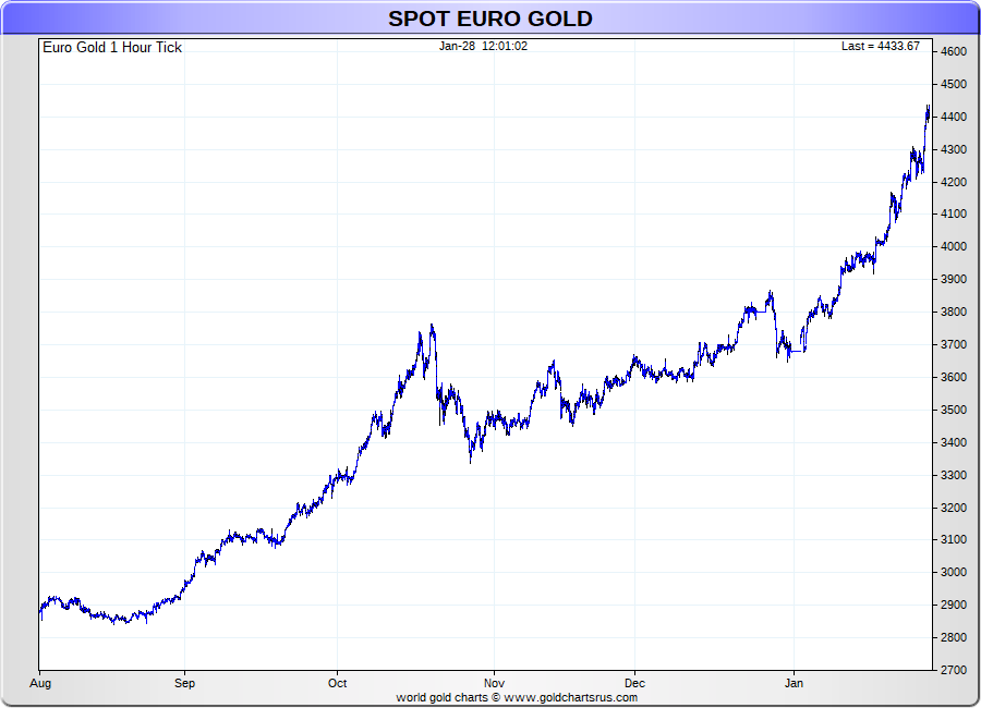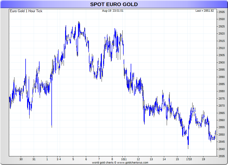 Spot Euro Gold - 60 Minute Tick Charts - 24 hours / 5 1/2 days - GCRU Precious Metals Charts