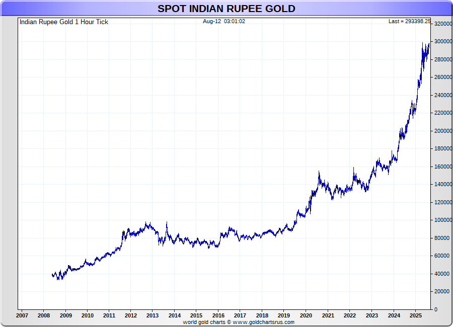 Spot Indian Rupee Gold - 60 Minute Tick Charts - 24 hours / 5 1/2 days - GCRU Precious Metals Charts