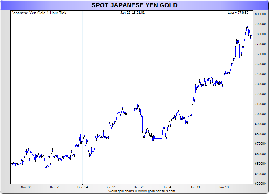 Spot Japanese Yen Gold - 60 Minute Tick Charts - 24 hours / 5 1/2 days - GCRU Precious Metals Charts