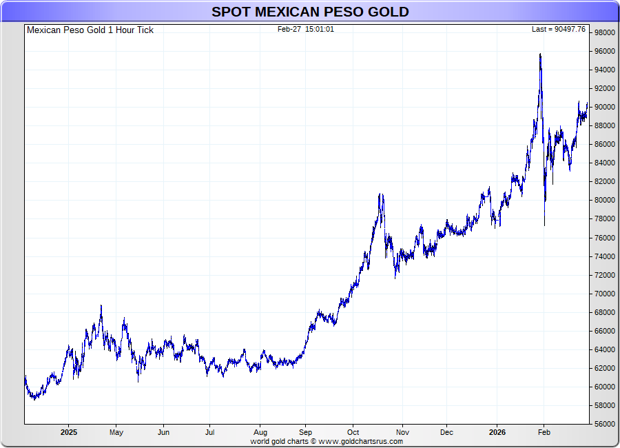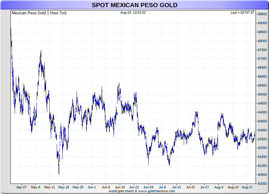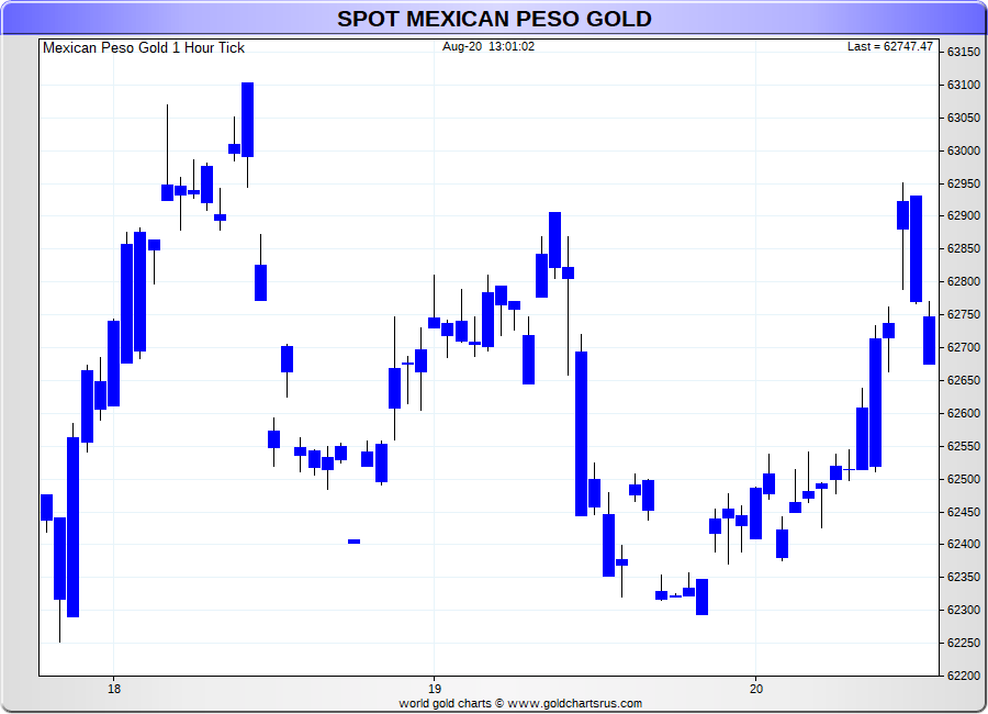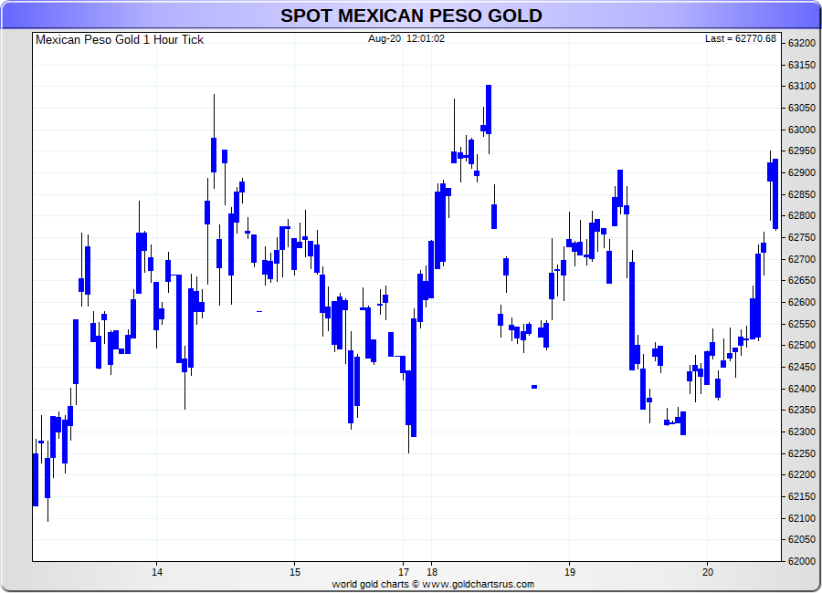 Spot Mexican Peso Gold - 60 Minute Tick Charts - 24 hours / 5 1/2 days - GCRU Precious Metals Charts