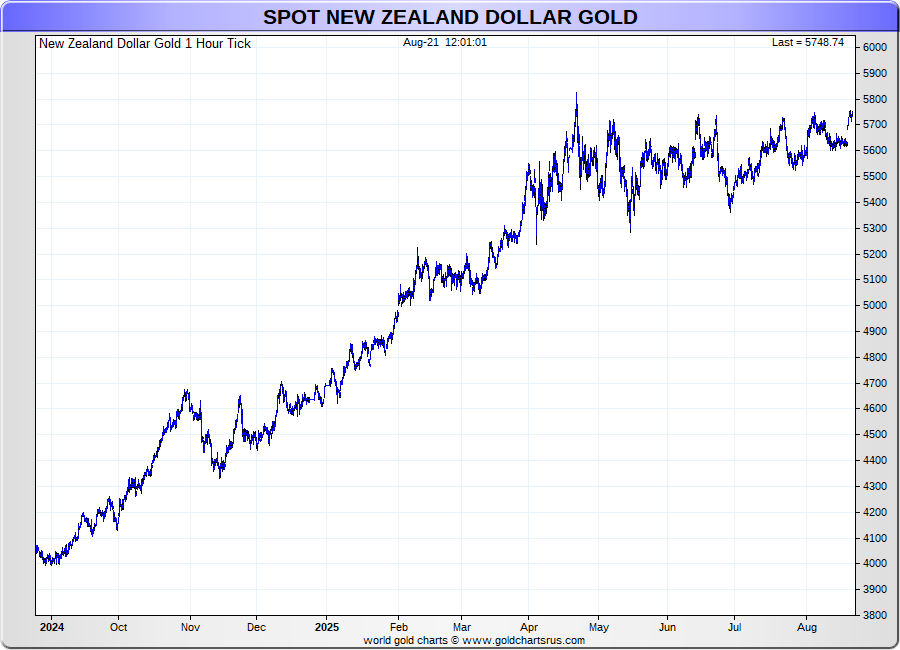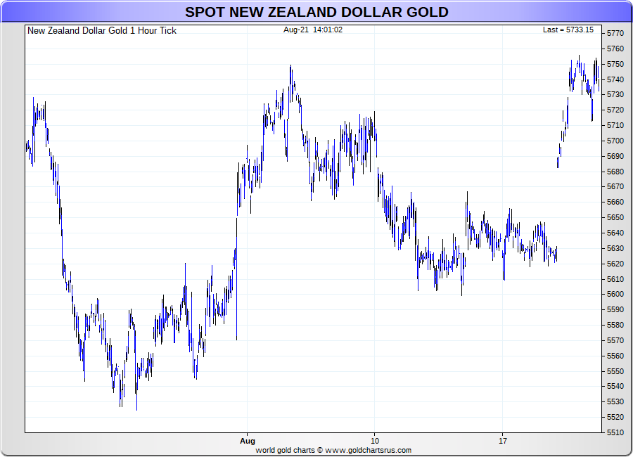 Spot New Zealand Dollar Gold - 60 Minute Tick Charts - 24 hours / 5 1/2 days - GCRU Precious Metals Charts