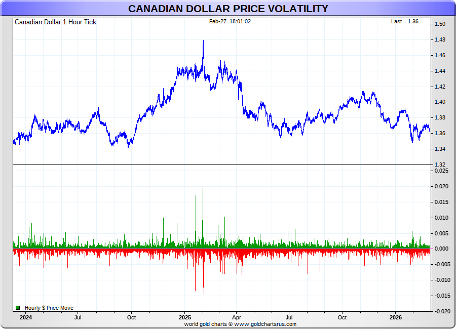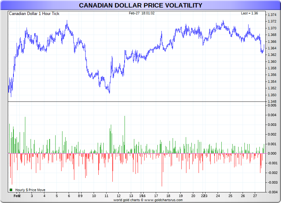 Spot Canadian Dollar - 60 Minute Tick Charts - 24 hours / 5 1/2 days - GCRU Precious Metals Charts