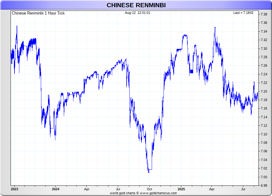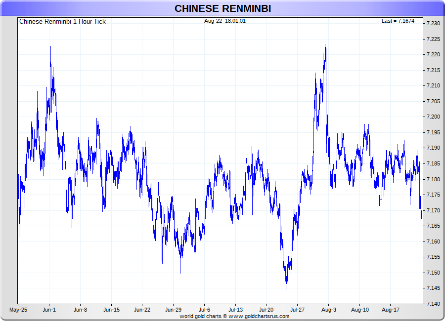 Spot Chinese Renminbi - 60 Minute Tick Charts - 24 hours / 5 1/2 days - GCRU Precious Metals Charts