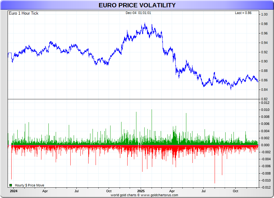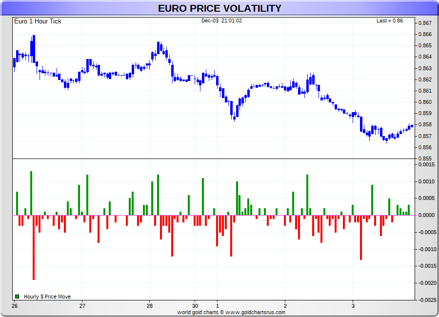 Spot Euro - 60 Minute Tick Charts - 24 hours / 5 1/2 days - GCRU Precious Metals Charts
