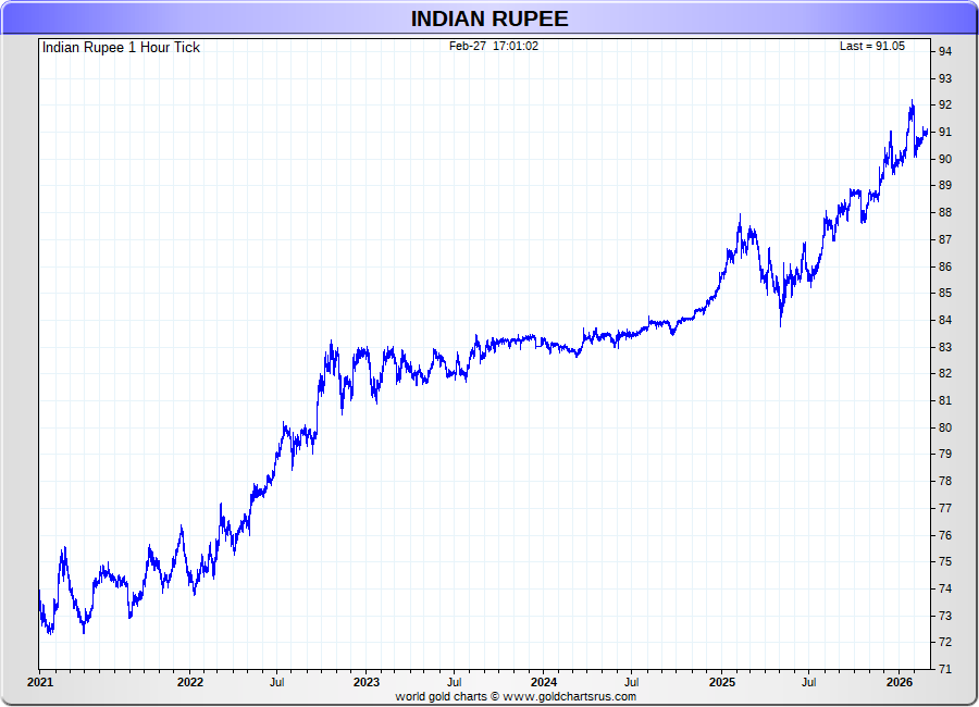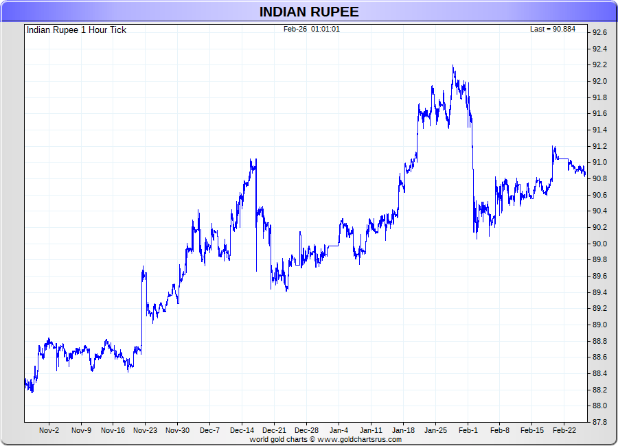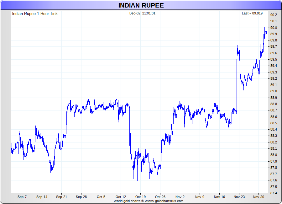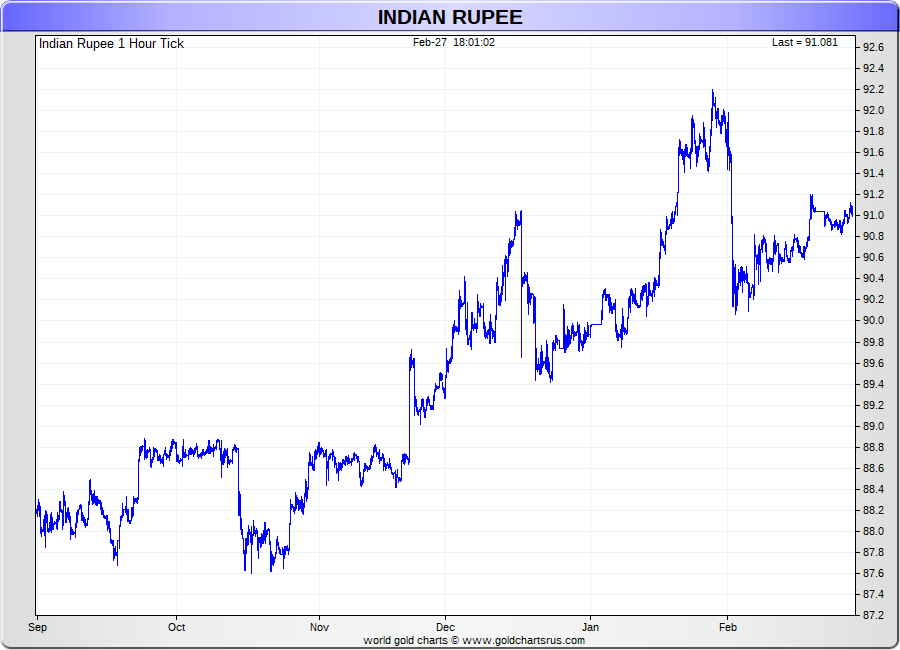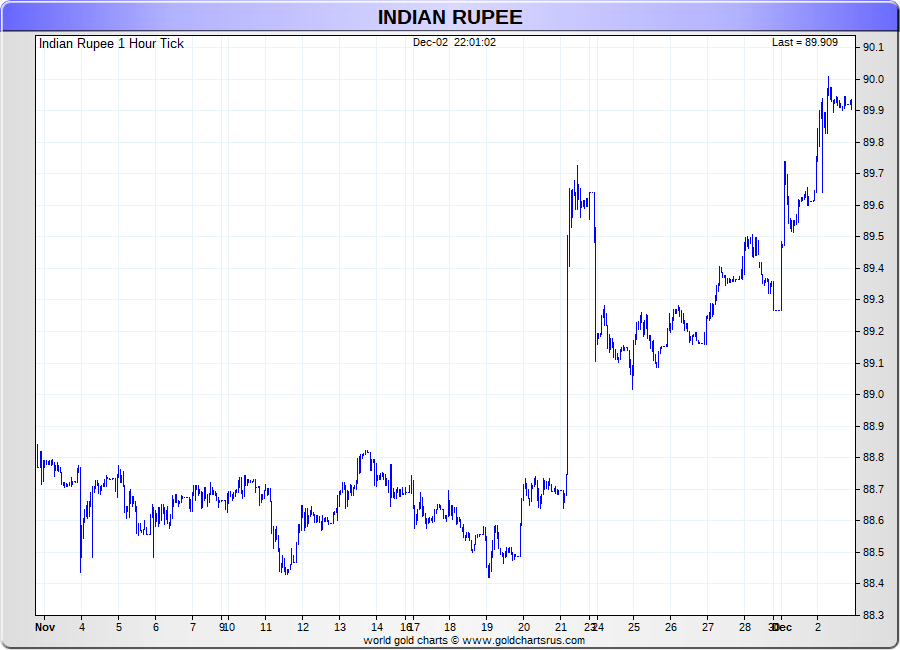 Spot Indian Rupee - 60 Minute Tick Charts - 24 hours / 5 1/2 days - GCRU Precious Metals Charts