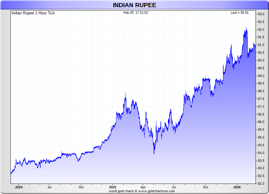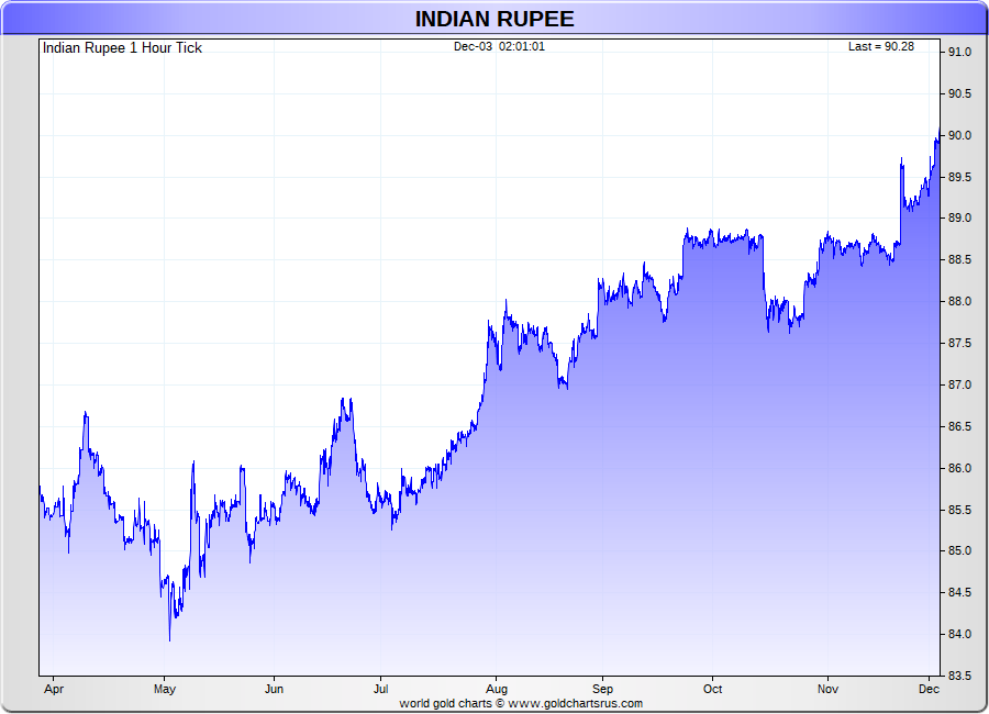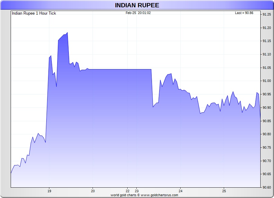 Spot Indian Rupee - 60 Minute Tick Charts - 24 hours / 5 1/2 days - GCRU Precious Metals Charts