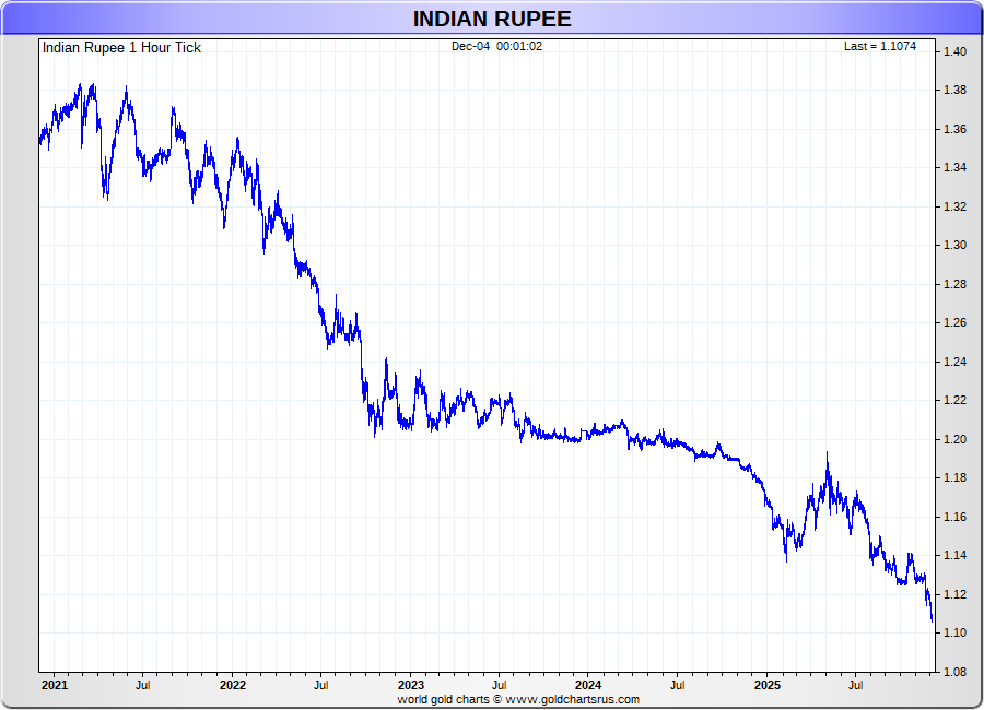 Spot Indian Rupee - 60 Minute Tick Charts - 24 hours / 5 1/2 days - GCRU Precious Metals Charts