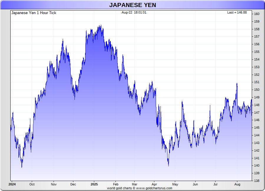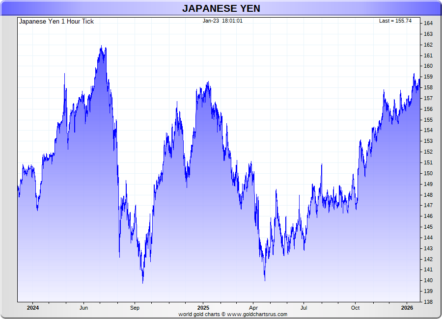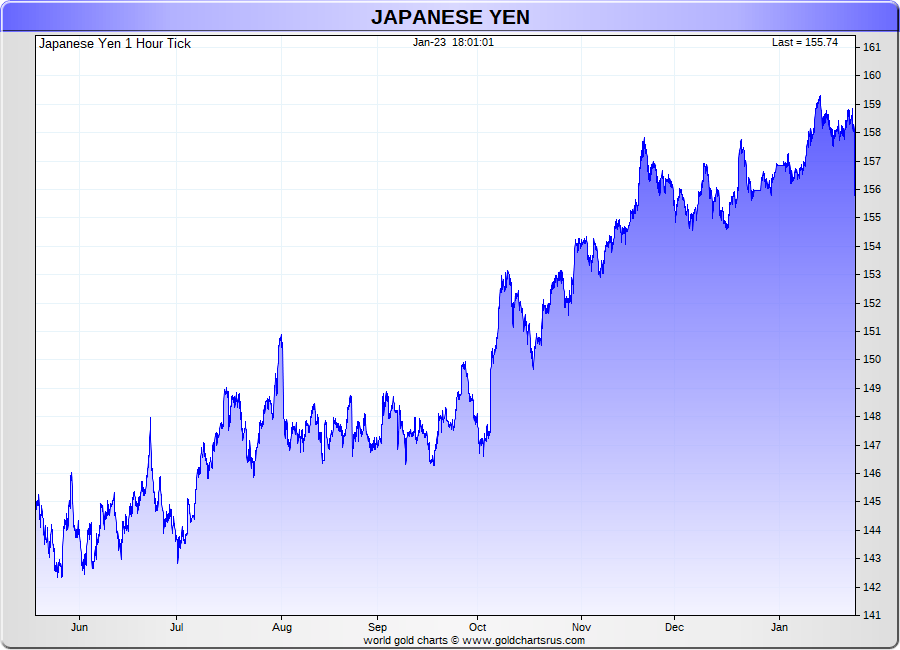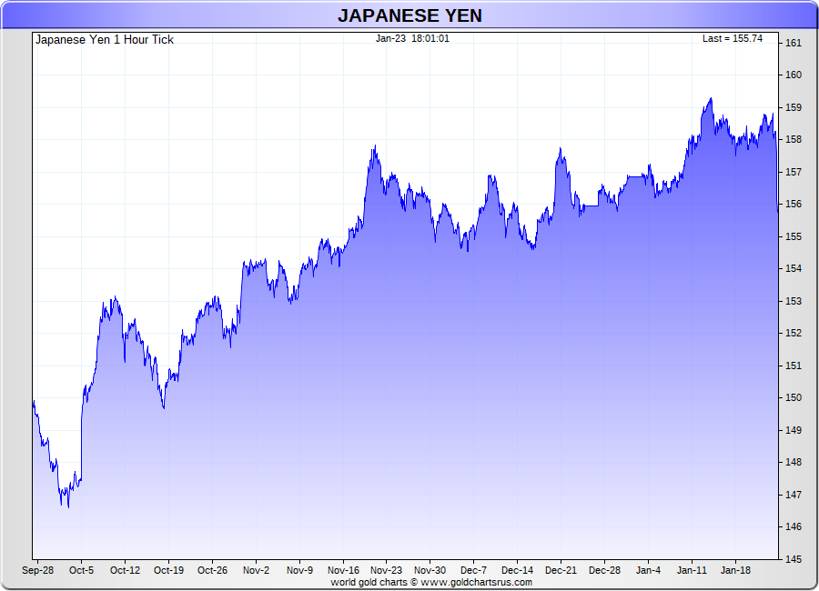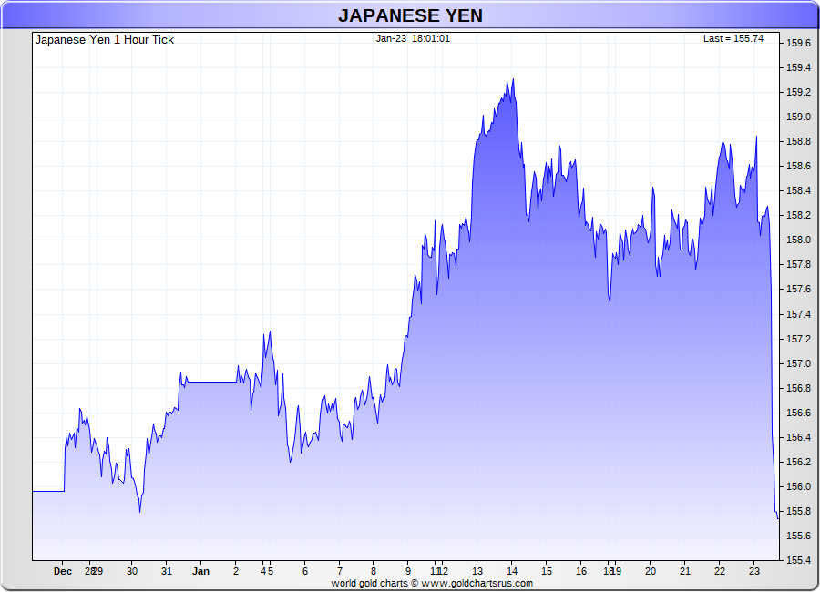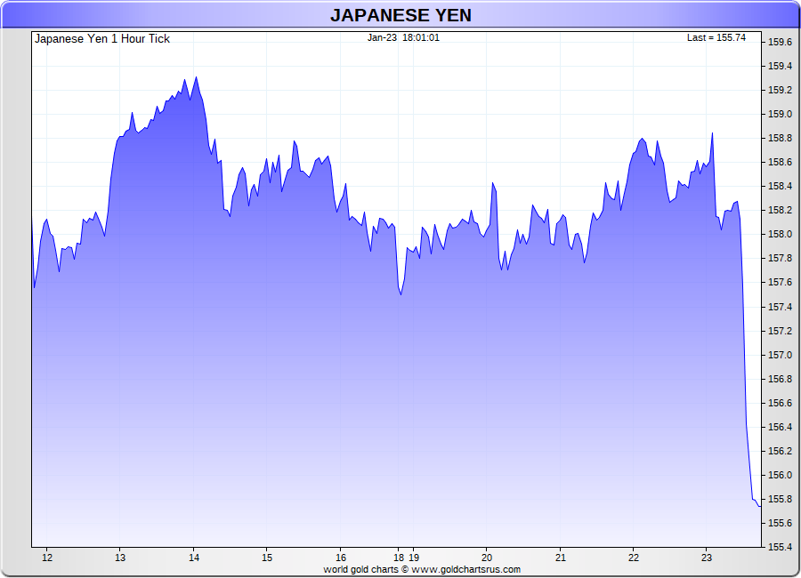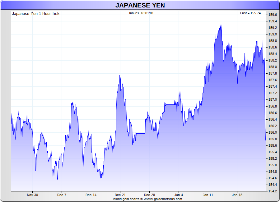 Spot Japanese Yen - 60 Minute Tick Charts - 24 hours / 5 1/2 days - GCRU Precious Metals Charts
