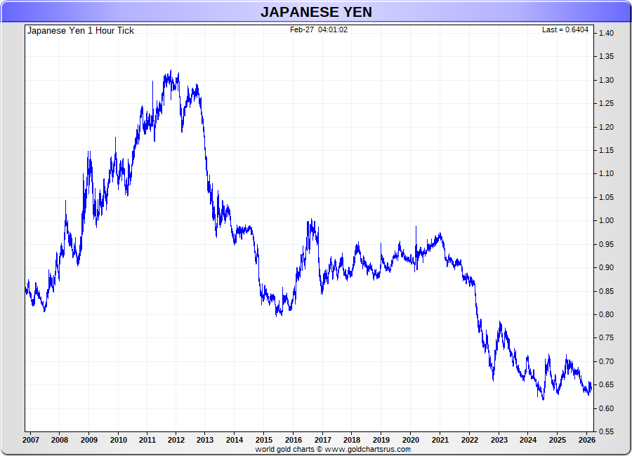 Spot Japanese Yen - 60 Minute Tick Charts - 24 hours / 5 1/2 days - GCRU Precious Metals Charts