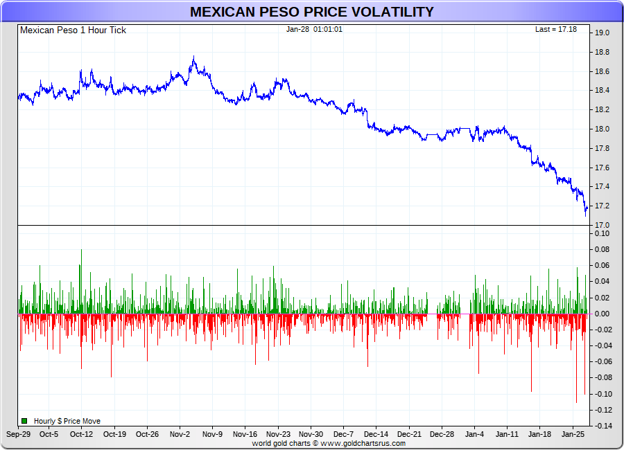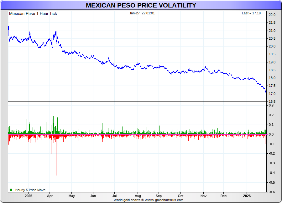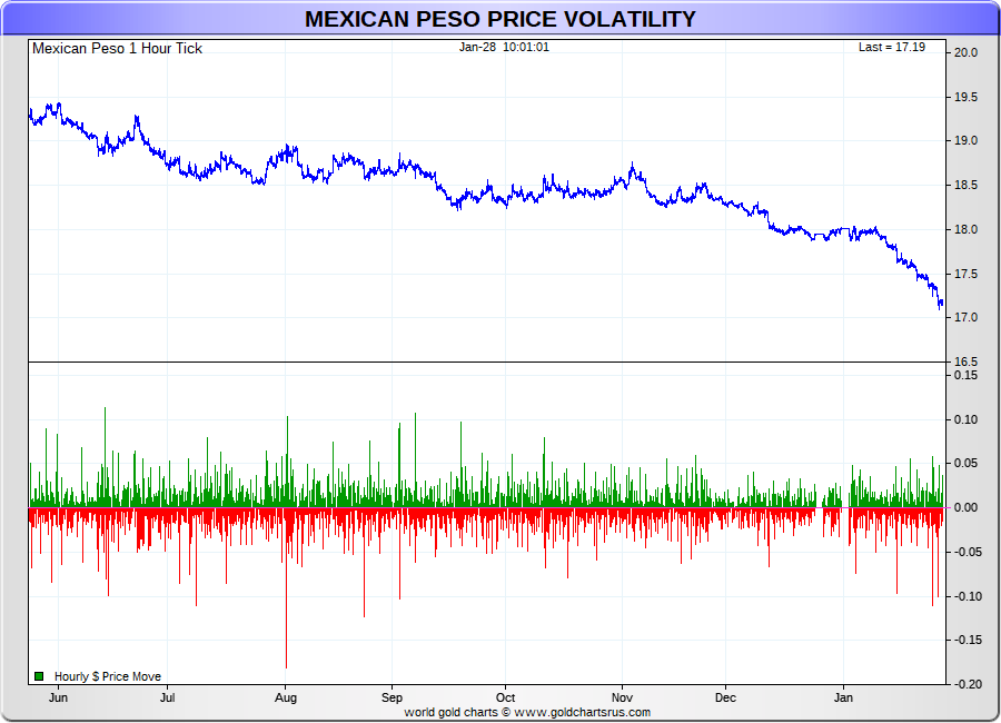 Spot Mexican Peso - 60 Minute Tick Charts - 24 hours / 5 1/2 days - GCRU Precious Metals Charts