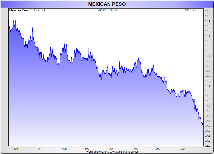 Spot Mexican Peso - 60 Minute Tick Charts - 24 hours / 5 1/2 days - GCRU Precious Metals Charts