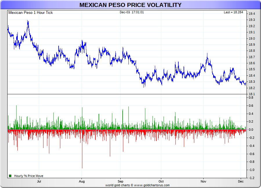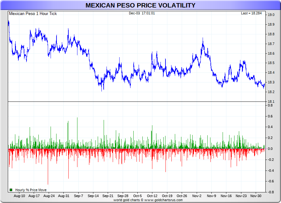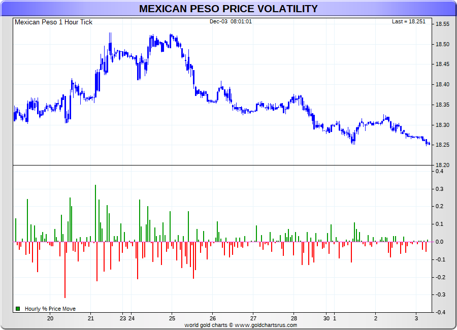 Spot Mexican Peso - 60 Minute Tick Charts - 24 hours / 5 1/2 days - GCRU Precious Metals Charts