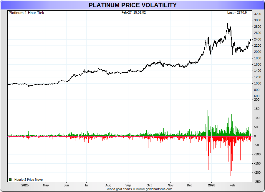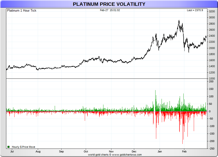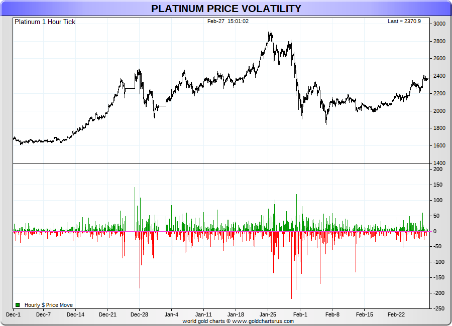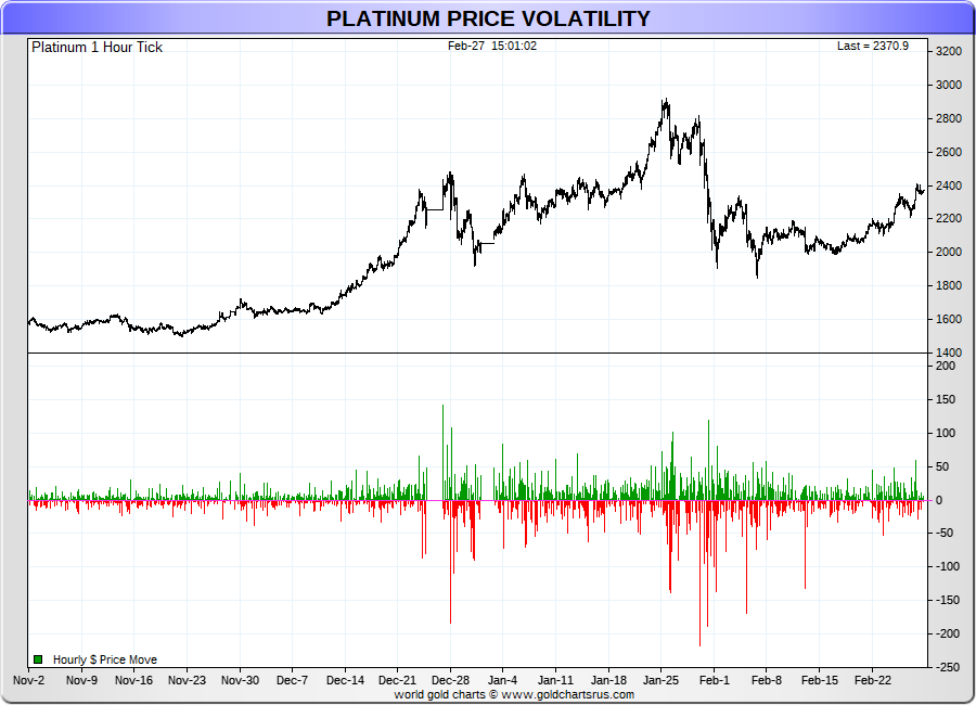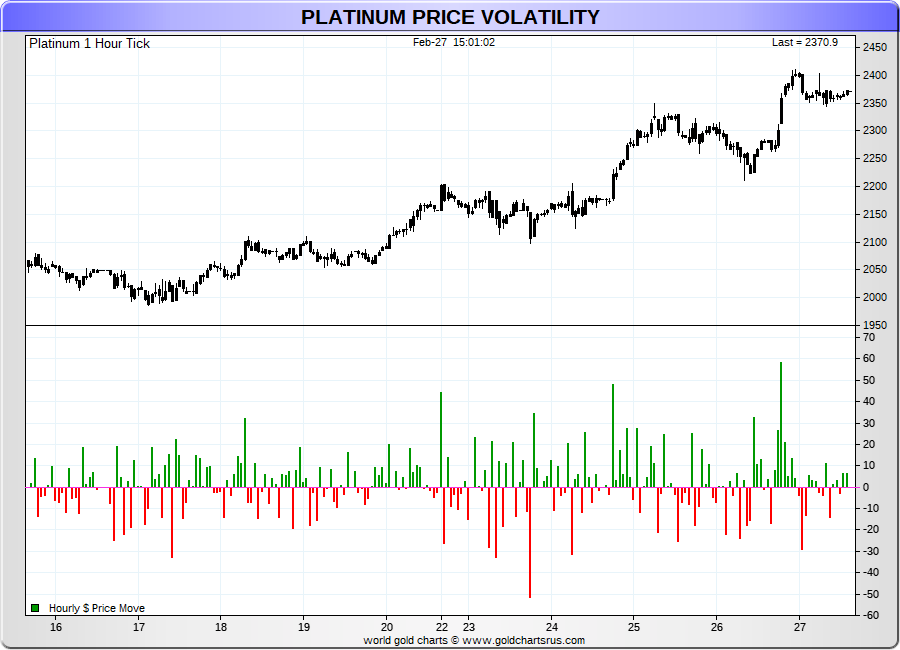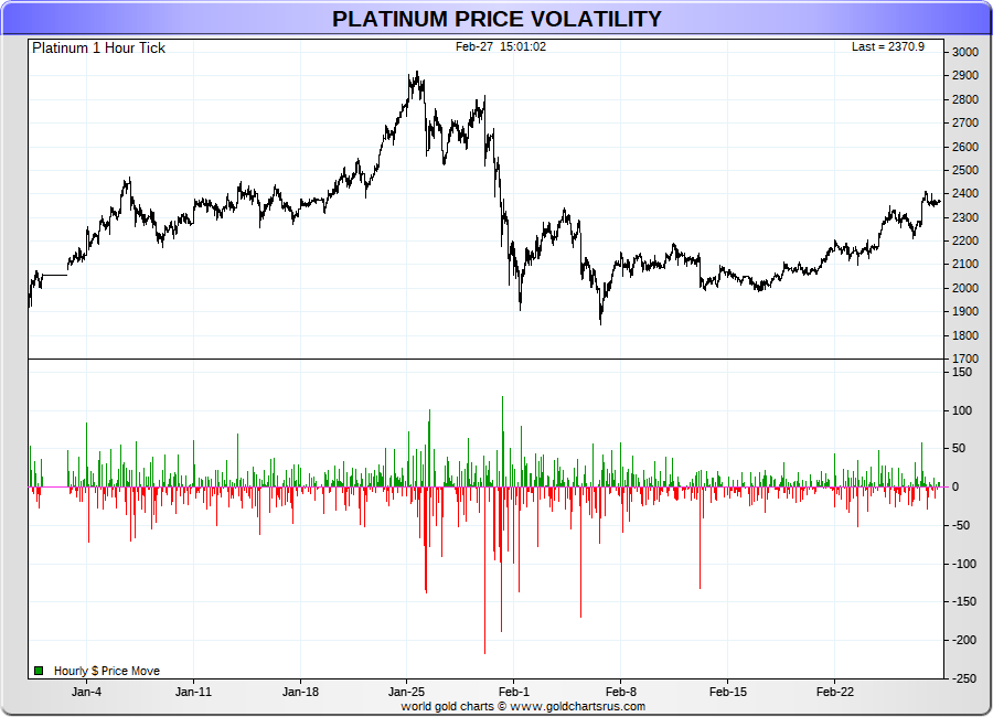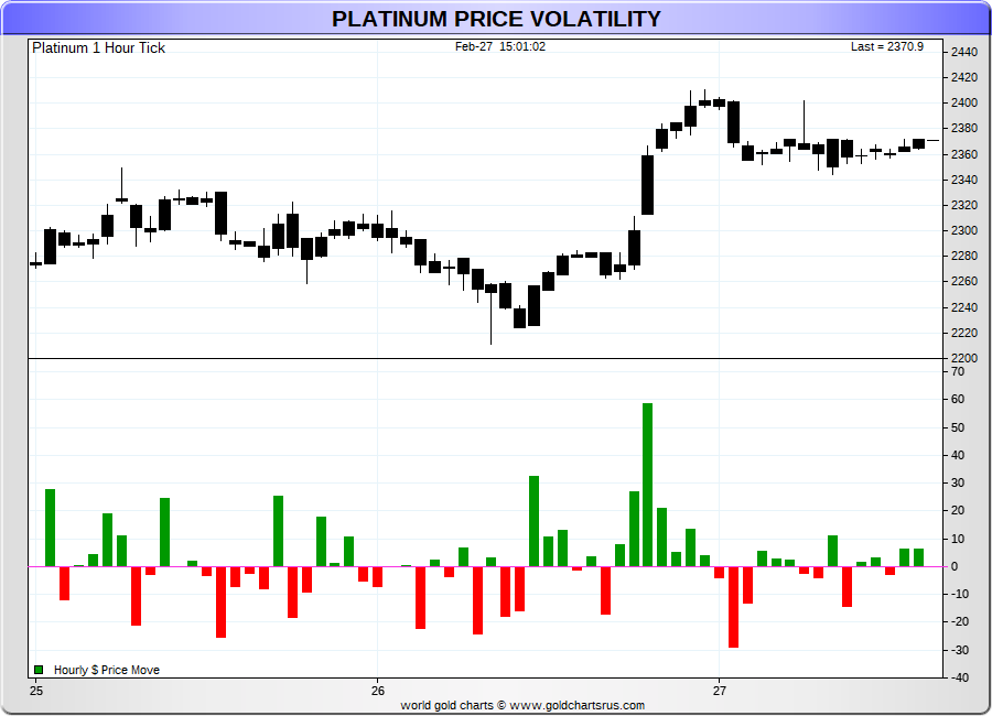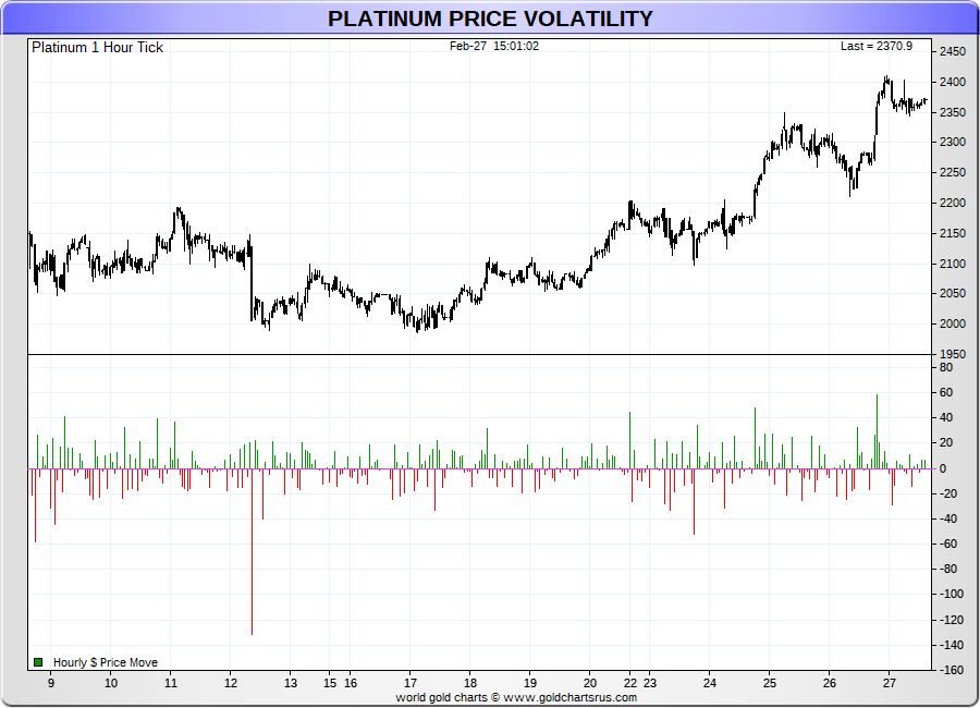 Spot Platinum - 60 Minute Tick Charts - 24 hours / 5 1/2 days - GCRU Precious Metals Charts