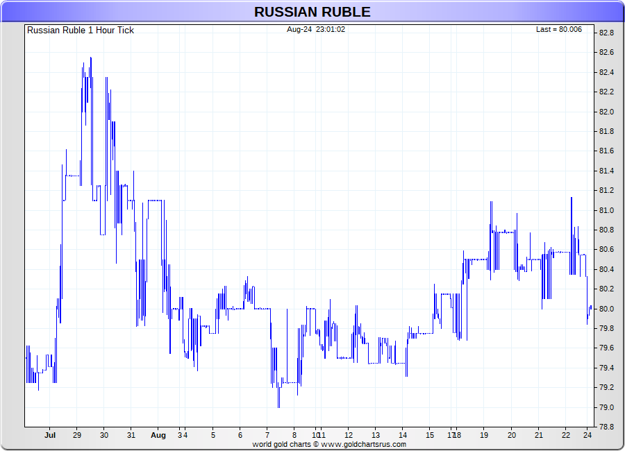 Spot Russian Ruble - 60 Minute Tick Charts - 24 hours / 5 1/2 days - GCRU Precious Metals Charts
