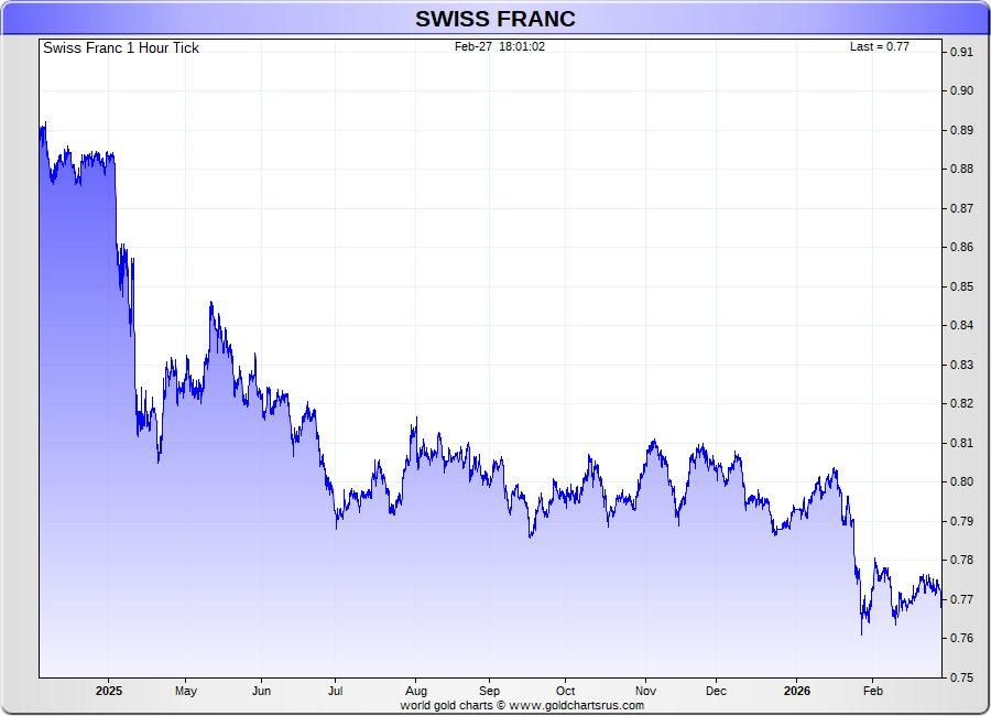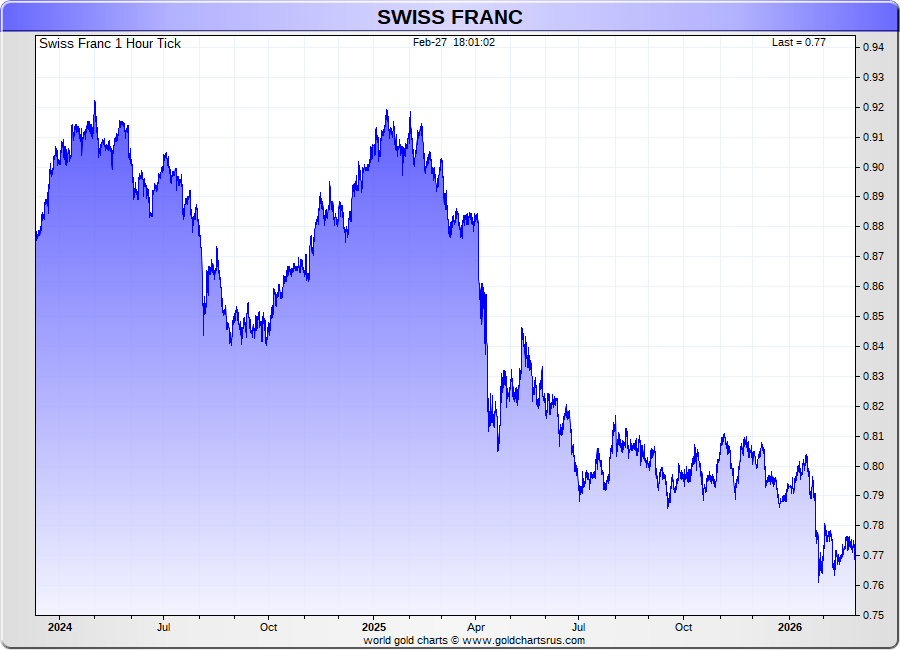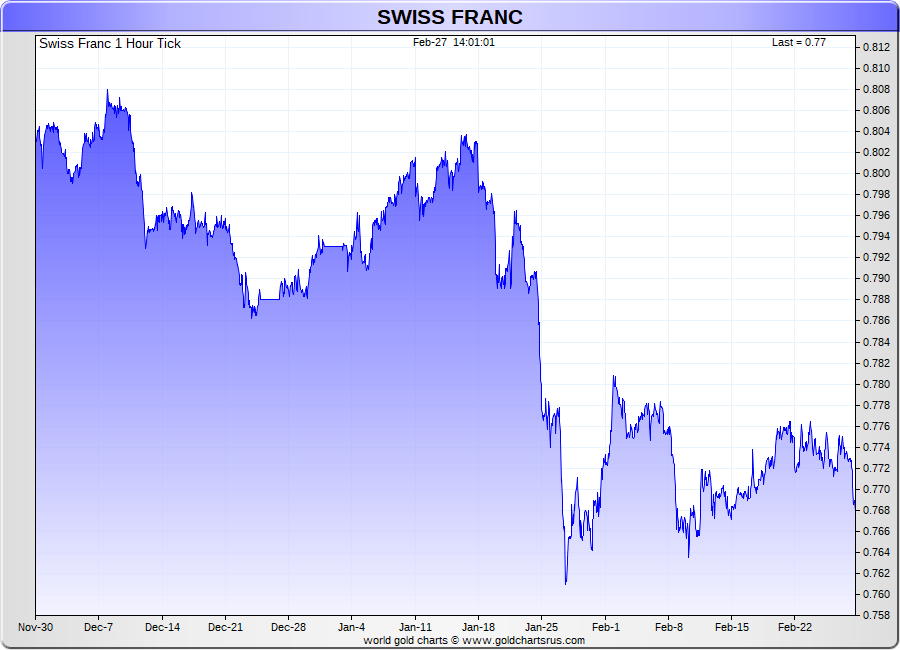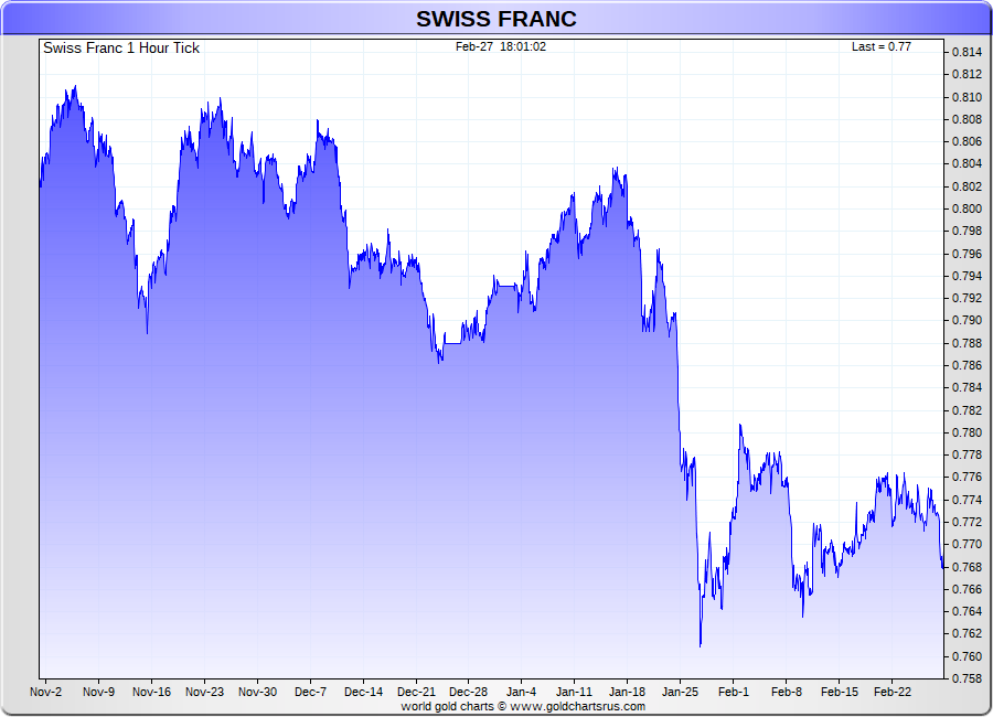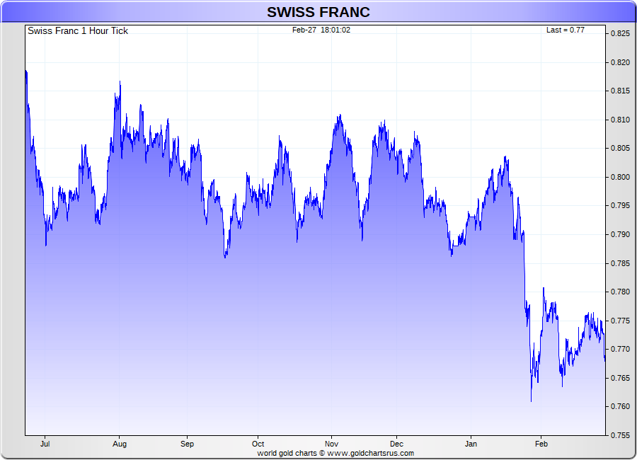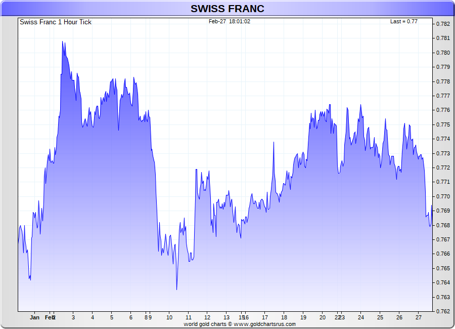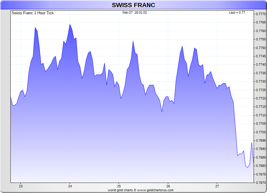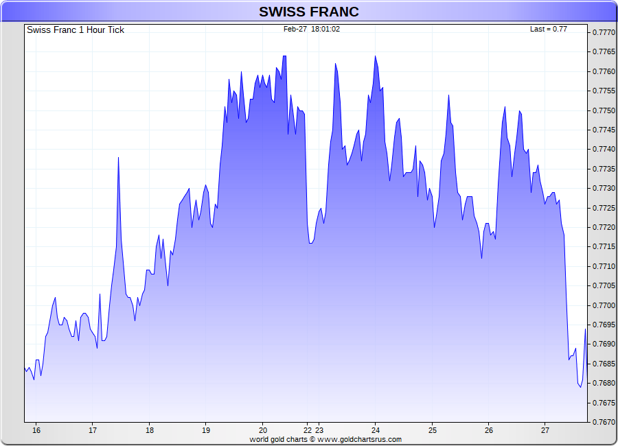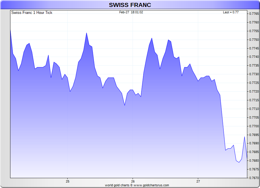 Spot Swiss Franc - 60 Minute Tick Charts - 24 hours / 5 1/2 days - GCRU Precious Metals Charts