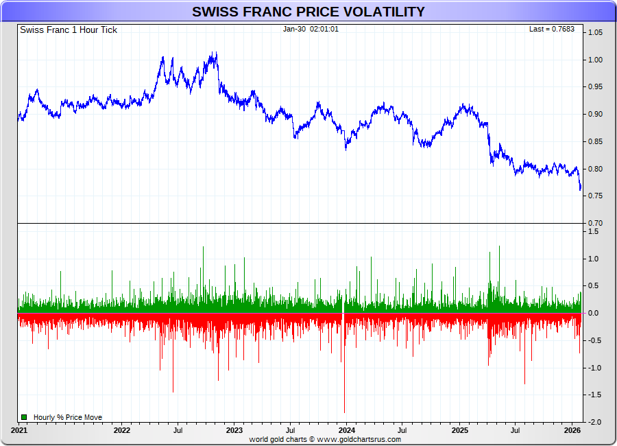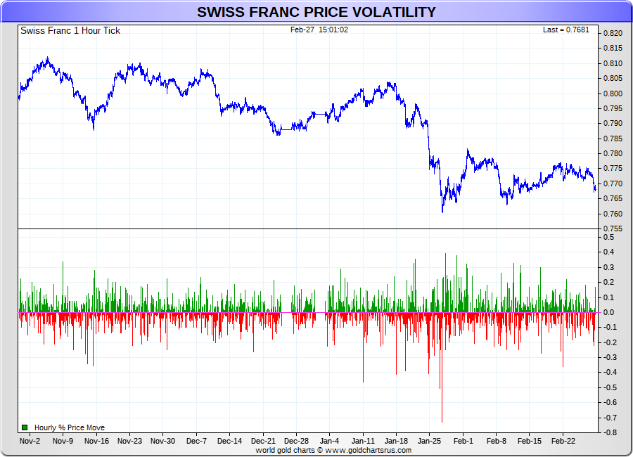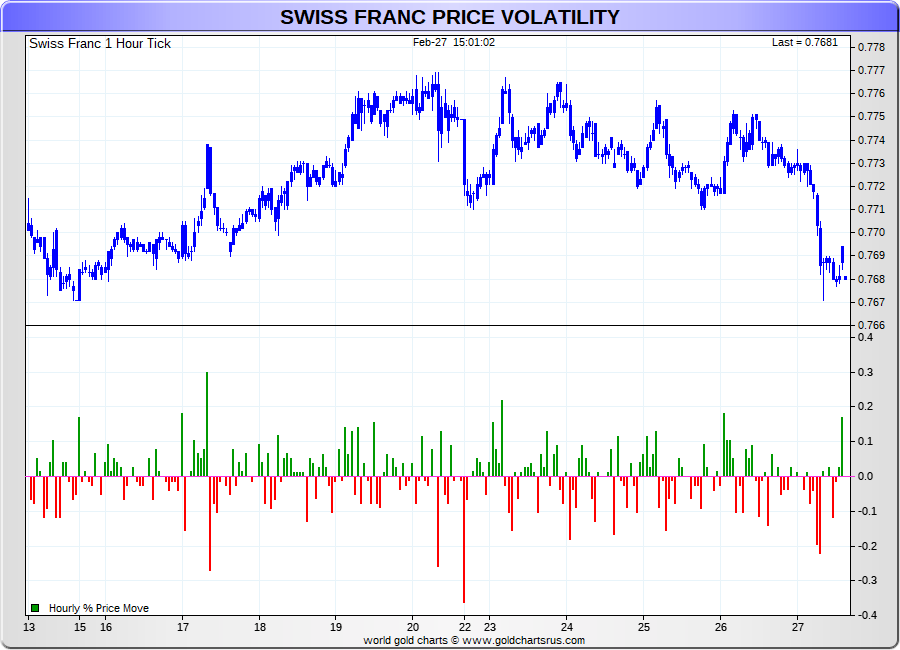 Spot Swiss Franc - 60 Minute Tick Charts - 24 hours / 5 1/2 days - GCRU Precious Metals Charts