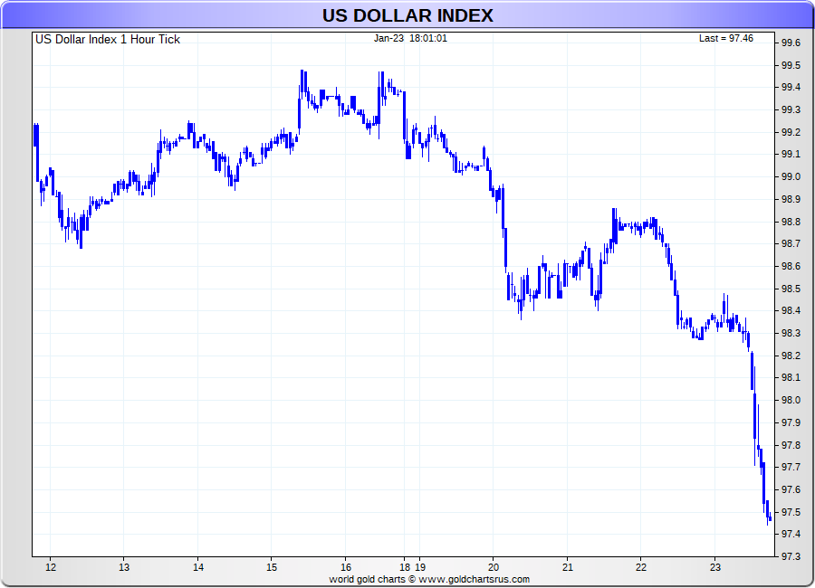 US Dollar Index - 60 Minute Tick Charts - 24 hours / 5 1/2 days - GCRU Precious Metals Charts