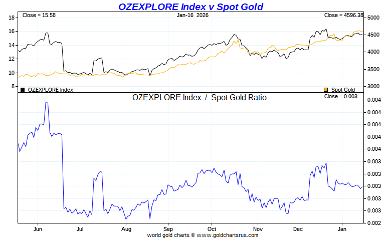 OZEXPLORE Gold Index vs Gold