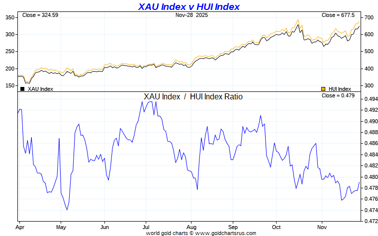 XAU Index vs HUI Index