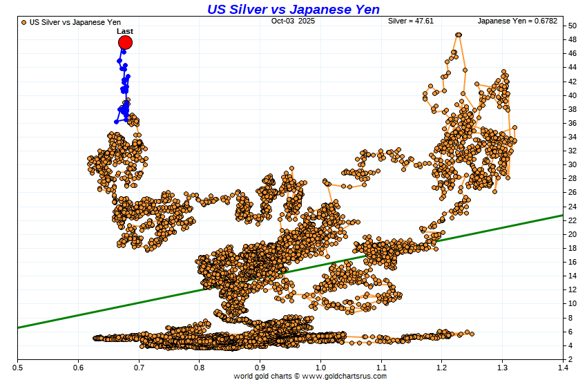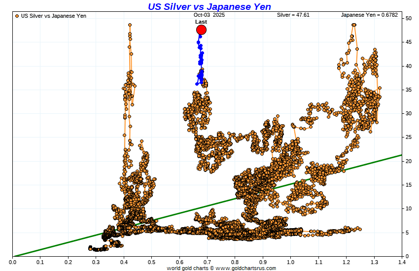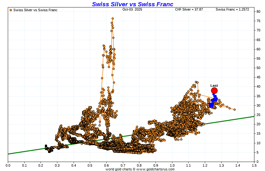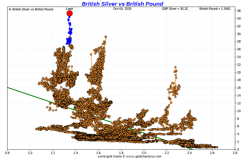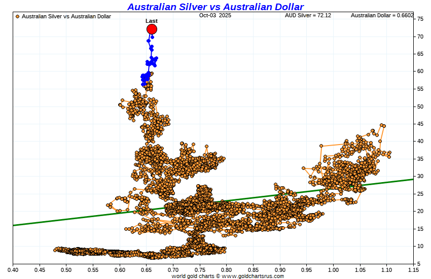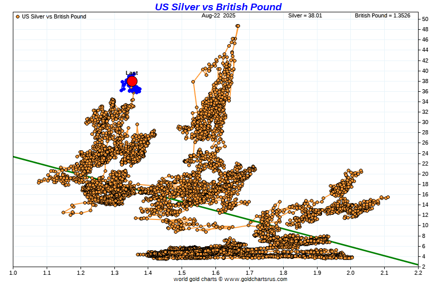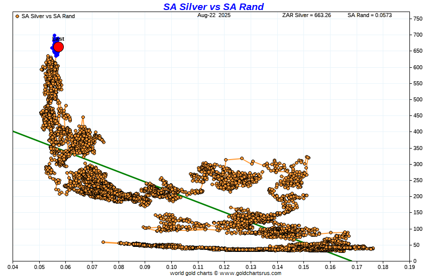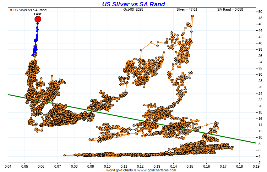 Spot Silver - ScatterPlot Charts - GCRU Precious Metals Charts