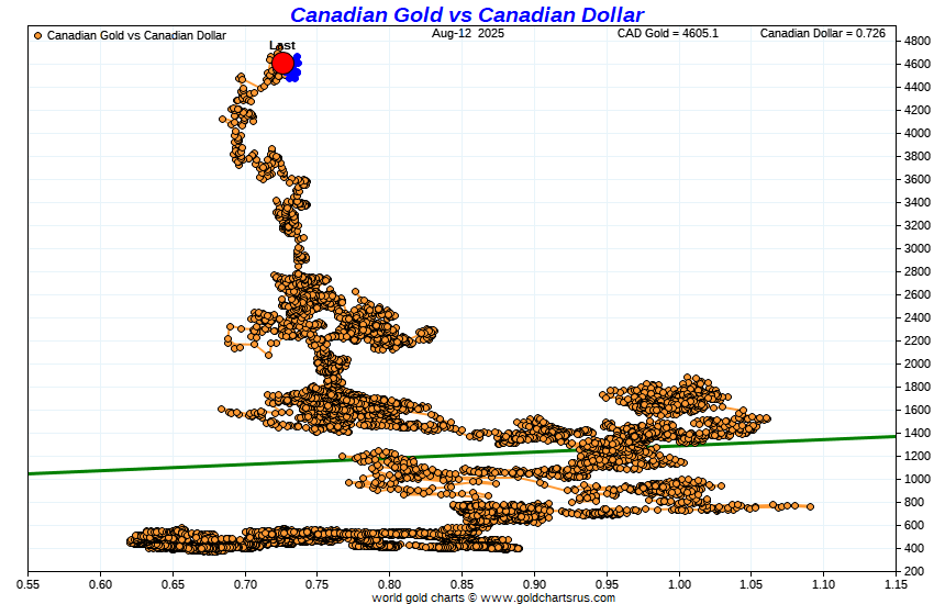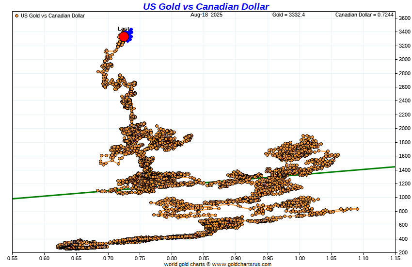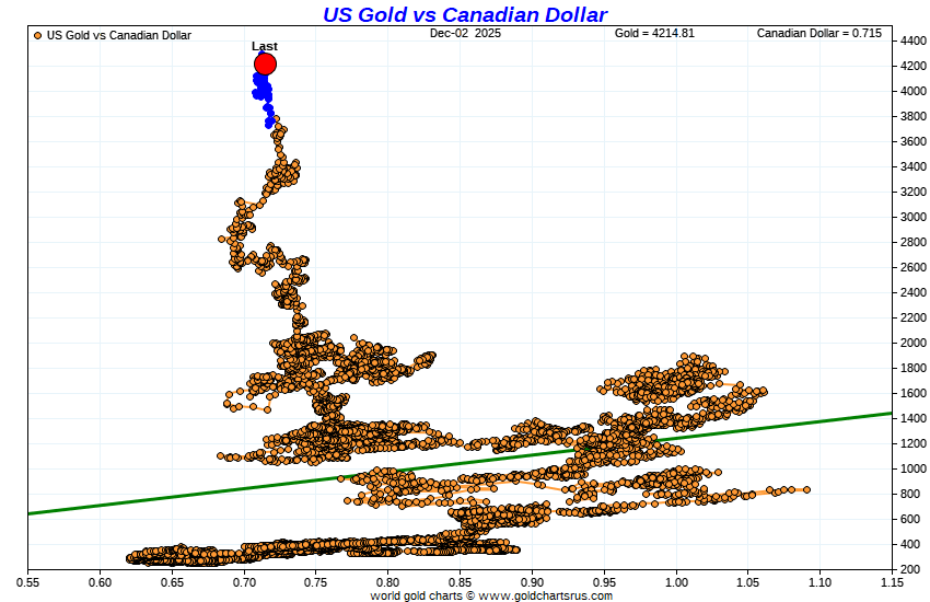 Spot Gold - ScatterPlot Charts - GCRU Precious Metals Charts