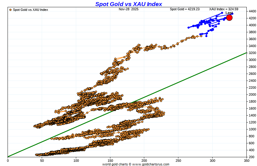 Gold vs HUI Index