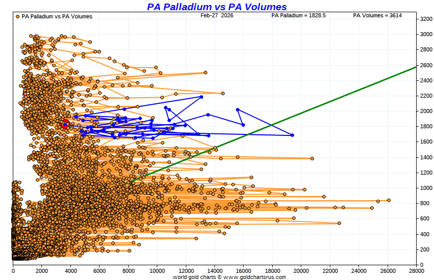 Palladium Futures - ScatterPlot Charts - GCRU Precious Metals Charts